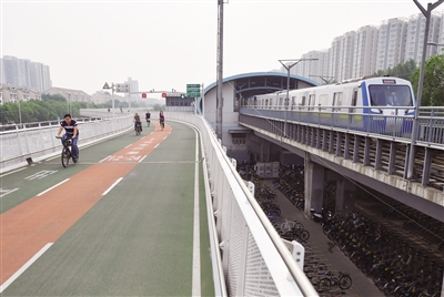 2021年5月20日清晨,北京通勤市民在自行车专用路上骑行。新京报记者 王贵彬 摄