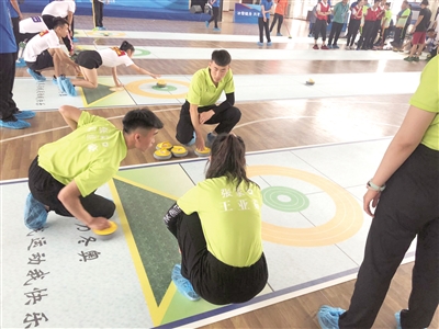 听障学生在石家庄参加河北省首届旱地冰壶比赛。