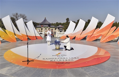 3月2日午间,在天坛圜丘,中国残疾人艺术团团长、中国特殊艺术协会副主席邰丽华手持采火棒,遵循古希腊传统的火种采集方式,使用凹面镜采集太阳光,成功引燃采火棒,采集到最后一路火种——“夏奥之火”,象征着北京“双奥之城”的独特魅力。
