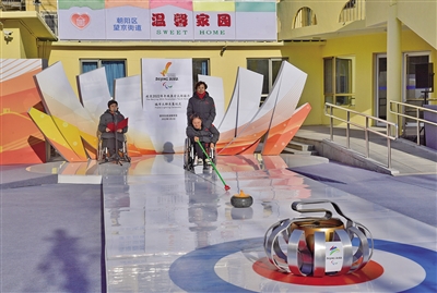 3月2日上午,在望京街道温馨家园,健全人与残疾人共同用“冰壶撞击”的方式采集火种。当日火炬传递的主题是——采集“互助之火”。
