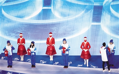 2月20日,北京冬奥会闭幕式,6位志愿者代表登上“鸟巢”舞台。新京报记者 陶冉 摄