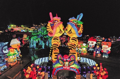四川自贡,第28届自贡国际恐龙灯会,“虎年来电”灯组。受访者供图