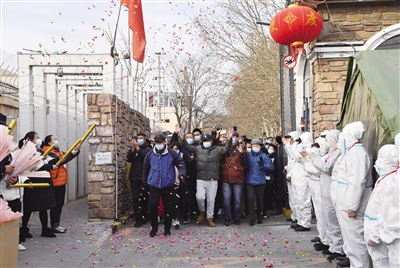 “我们胜利解封啦!”2月6日中午,大兴区安定镇后辛房村门禁缓缓抬起,村口安保人员卷起警戒线,村民们手持五星红旗有序走出,开心挥手,庆祝工作生活重归正常。工作人员手拿测温枪,一丝不苟地给进入村庄的人员测温、查证。