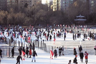 今年春节期间公园中的冰雪活动特别受欢迎,共接待游客15.87万人次,其中冰场7.03万人次,雪场8.84万人次。