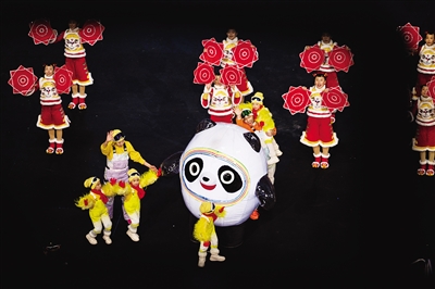 2月4日,国家体育场,“冰墩墩”与演员在台下共舞。