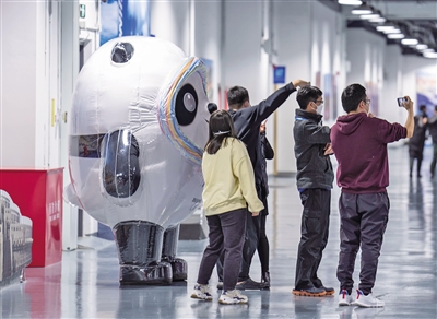 “冰墩墩”也是闭环内重要的装饰元素。介绍中国火锅的“冰墩墩”黑板画、“冰墩墩”挂灯、新春“冰墩墩”祝福展板,“冰墩墩”手绘工艺品、背景板、气球、新春窗花等,随处可见带有“冰墩墩”元素的物件。