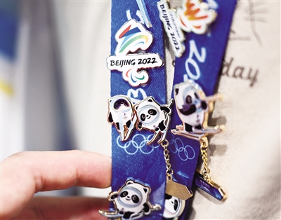 闭环内,随处可见印有“冰墩墩”的物件。很多运动员、媒体记者、冬奥志愿者成了“冰墩墩”的迷弟迷妹,证件挂带上挂满了“冰墩墩”徽章。