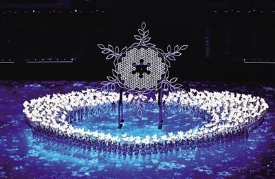张艺谋:参赛国家和地区的小雪花的排序,我们是顺时针排序。我们都知道第一个是希腊,最后一个是中国。我们顺时针按照中国简化字国家名字第一个字的笔划,顺时针旋转组合。这也是经过国际奥委会的批准。