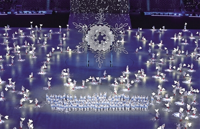 2月4日晚,北京冬奥会开幕。数百名小朋友在场内自由愉快地奔跑,与脚下晶莹闪亮的“星星雪花”嬉戏。新华社记者 武巍 摄