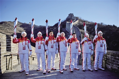 在象征“民族之脊”的八达岭长城,约40名火炬手高举火炬,矫健的身姿与壮美的世界文化遗产融为一体;在展示“大众冰雪”的延庆世界葡萄博览园,约50名火炬手穿梭在科普馆、冰场、雪地嘉年华等百姓休闲场所,将奥运精神传递到更多人身边。