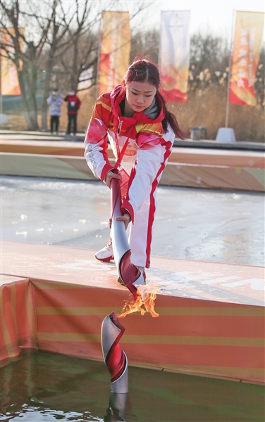 在北京冬奥公园,最引人关注的是在水下完成的火炬传递环节。这个环节由水陆两栖机器人与水下变结构机器人共同完成,包括机器人冰面滑行入水、水下火炬交接传火、机器人出水三部分。传递过程中,不仅能体现火焰在水中“水火相融”的神奇景象,还能展现设计者所倡导的绿色环保理念。