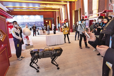 北京新闻中心展示智能机器人。
