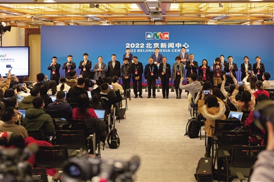 2月1日,2022北京新闻中心正式对外开放。图为新闻发布会现场,发言人与相关负责人亮相。A04-A05版摄影/新京报记者 郑新洽