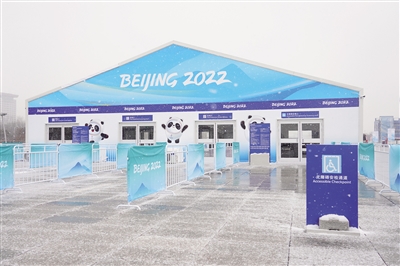 1月20日,奥林匹克公园,为残障人士、老年人等服务的无障碍安检口搭建完成。