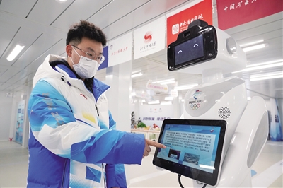 1月20日,奥林匹克公园公共区志愿者之家内,机器人“迎雪”每天播报当日新闻。