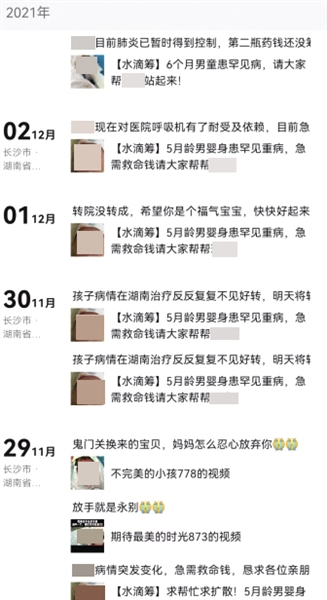 叶萍是一名SMA患儿的母亲,去年12月,她向不少认识的人发了一条消息,恳请他们点进为孩子发布在筹款网站上的求助视频。而点进她的朋友圈,基本全是为孩子筹款的链接。