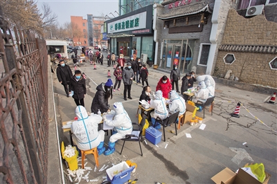 1月12日,河南省安阳市彰德路与洹滨南路交叉口处,市民进行核酸检测。图/IC photo