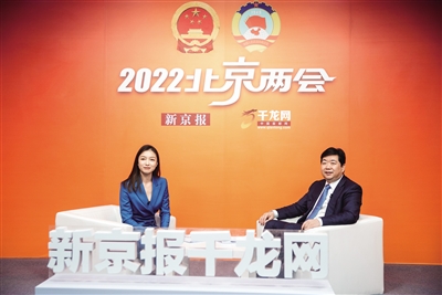 1月7日,西城区区长孙硕(右)做客新京报千龙网两会访谈间。新京报记者 王子诚 摄