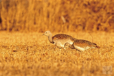 北京麋鹿苑研究员郭耕介绍,大鸨是国家一级保护动物,国际自然保护联盟确定其为世界易危物种,与大熊猫级别一样。统计数据显示,大鸨在全世界的数量只有数千只。