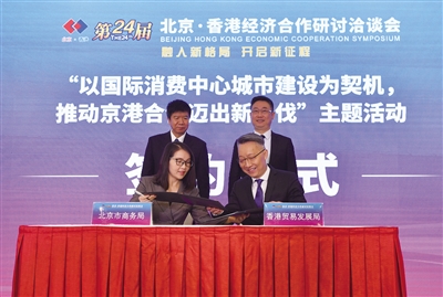作为第二十四届京港洽谈会专题活动之一,“以国际消费中心城市建设为契机,推动京港合作迈出新步伐”主题活动在国家会议中心举办。迪卡侬、阿里健康、屈臣氏等5家境外时尚消费品牌总部落户北京。此外,京港两地签署了2022年度京港合作备忘录,两地将共推北京“两区”建设。