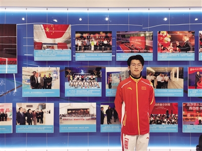 11月23日,杨一铭在港澳台侨同胞共建北京奥运场馆纪念展内留影。受访者供图