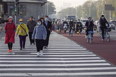 10月26日,通州区银地路口,行人和非机动车各行其道。新京报记者 王子诚 摄