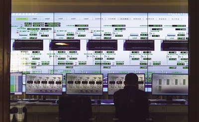 昨日,大兴区北燃热力观音寺供热厂系统生产平台监视大屏显示二号锅炉已在供热。本版摄影/新京报记者 李木易