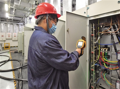 在低压配电柜后面,有数十根不同颜色的电源线,“通俗讲,它们就是配电柜的‘血管’,电力专业检测人员需要将每根电源线进行检查,确保‘不堵塞’。”电力副经理王婷说。