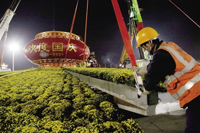 据北京市园林绿化局介绍,目前,长安街沿线的10座立体花坛也在紧锣密鼓布置当中,今年国庆天安门广场及长安街沿线摆花工作预计9月25日正式完工。