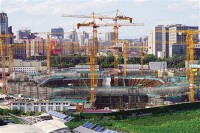 8月27日,施工中的北京新工体。图/IC photo