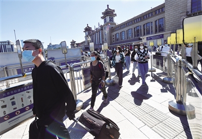 昨日,北京站,抵京旅客出站。新京报记者 王贵彬 摄
