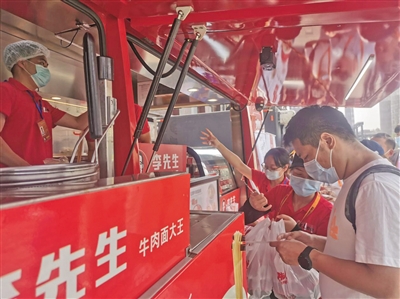 龚立清介绍,去年李先生就参加了服贸会的餐饮保障服务。今年,李先生专门成立项目组,从原材料选取、菜品研发、运营服务等多方面保障此次服贸会餐饮工作。“顾客下单之后,可以在移动餐车上现场煮面,与在门店里吃到的面口感完全一致。”同时还针对性地增加了像木耳等配菜,此外还有儿童餐。