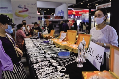 昨日,服贸会国家会议中心展区,展商开始销售样品。新京报记者 浦峰 摄