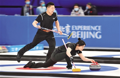 4月2日,冰立方,运动员在场内进行冰壶比赛。新京报记者 陶冉 摄