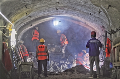 在地铁28号线(原CBD线)03标段项目部施工现场,记者看到,工人正在进行横通道的开挖。