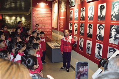 山东省蒙阴县八一红军希望小学宣讲团的学生在孟良崮战役纪念馆担任小小讲解员。 学校供图