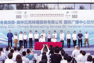 新京报讯 (记者吴为)7月4日,国际广播中心交付仪式在国家会议中心二期东广场举行。作为北京冬奥会的主媒体中心的重要组成部分,国际广播中心正式移交给奥林匹克转播服务公司。