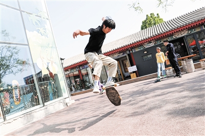 2021年“五一”假期,一个男孩在郎园Park里玩滑板。A06-A07版图片/受访者供图