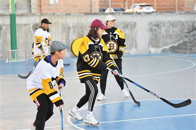 2021年12月,郎园联合马蜂窝做的街头冰球活动。受访者供图