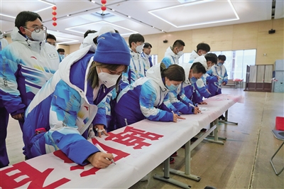 2022年1月23日,迎着小雪花,首都高校1.4万余名师生志愿者入驻冬奥驻地,入驻当天,首都高校志愿者共上一堂“冰雪上的思政课”,世界冠军王春露以“我和我的祖国”为主题,普及冰雪运动常识,讲述为国争光的拼搏故事。1月30日,北京市委教育工委组织首都高校志愿者同上一堂“冰雪上的思政课”,清华大学建筑学院院长张利以“建筑:服务国家发展 服务民生需求”为题,揭秘冬奥场馆设计和建设中蕴藏的科技魅力,讲述科研工作者心怀“国之大者”的担当作为。