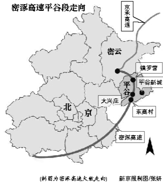姜帆透露,目前已初步确定了密涿高速在平谷境内的走向,密涿高速平谷段南起平谷区南侧市界,与河北省境规划线位相接。向北经平谷区、密云县与京承高速相接,区域范围内道路全长约38公里。