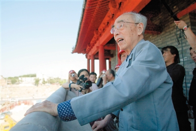 2004年9月1日,93岁高龄的著名历史地理学家、中国科学院院士侯仁之先生,第一次登上了复建总体竣工的永定门城楼。 殷楠 摄