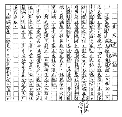《北京建城记》手稿。