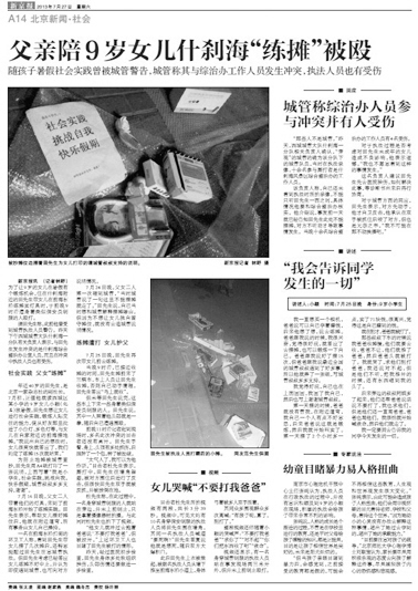 7月25日,一名9岁小学生在什刹海练摊进行社会实践,过程中孩子父亲与执法人员发生冲突。事发后,西城区成立调查组。