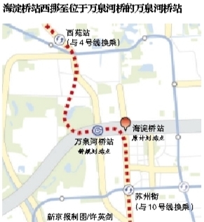 记者注意到,此前的规划方案中,西苑站和苏州街站之间是海淀桥站,位于颐和园路与北四环交叉的海淀桥一带。而此次调整后的方案中,海淀桥站取消了,而是向西挪至万泉河路和北四环交叉的万泉河桥一带,成为一个新的站点——万泉河桥站。