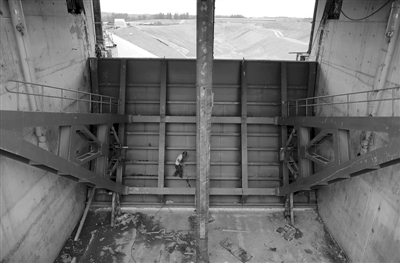 6月27日,工人在检查刁河渡槽水闸的施工质量。刁河渡槽是整个南水北调中线工程的第一个渡槽,距离丹江口水源地仅14公里,丹江口水源调向北京的用水,经流的第一个渡槽就是这里。