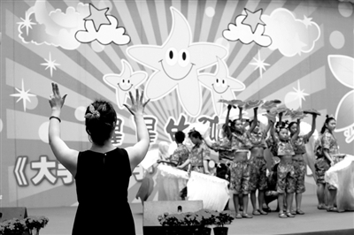 夏令营残障小演员表演舞蹈。昨日,由中国残疾人福利基金会主办的“自闭症和智障儿童夏令营”北京站开营仪式在京举行。新京报记者 王叔坤 魏铭言 摄影报道