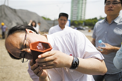 新京报讯 (记者刘春瑞)“呀!能从杯子底部往里面吹气,水却不从杯子底部流出。”昨天,在中关村展示中心雨洪利用示范工程现场,仁创科技集团董事长秦昇益演示着高科技产品——防水透气沙。这种沙子将应用到这个工程中,用于防止蓄水池中的水下渗。