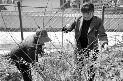 近日,平谷大华山镇副镇长闫凤娇(右)在指导工人种连翘。