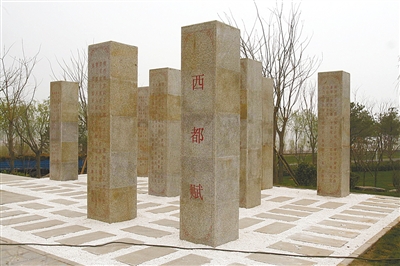 西都赋汉台右侧有一片石碑,碑上刻的是《西都赋》部分赋文。《西都赋》是东汉史学家、文学家班固创作的,描写了当时长安的形胜、制度、文物等。